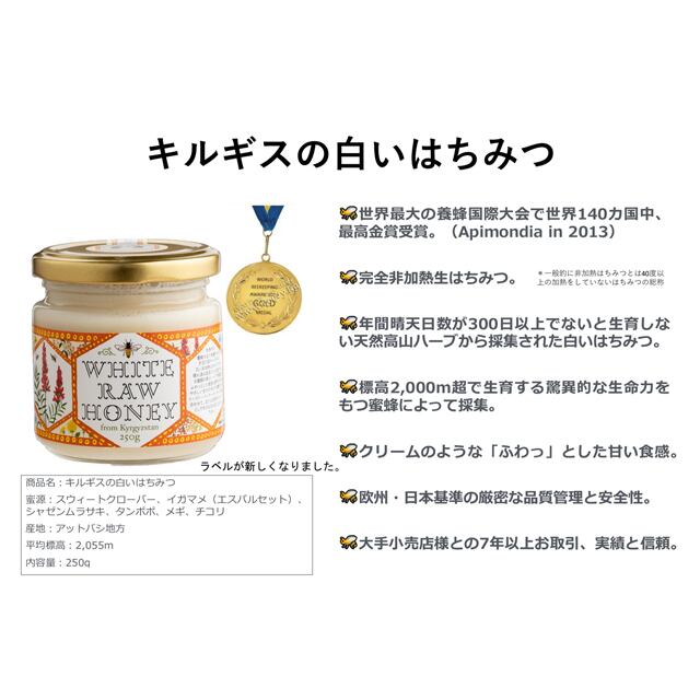 3個セット キルギスの白いはちみつ 250g 完全非加熱生はちみつ 活性酵素 ローハニー RAW HONEY 生はちみつ