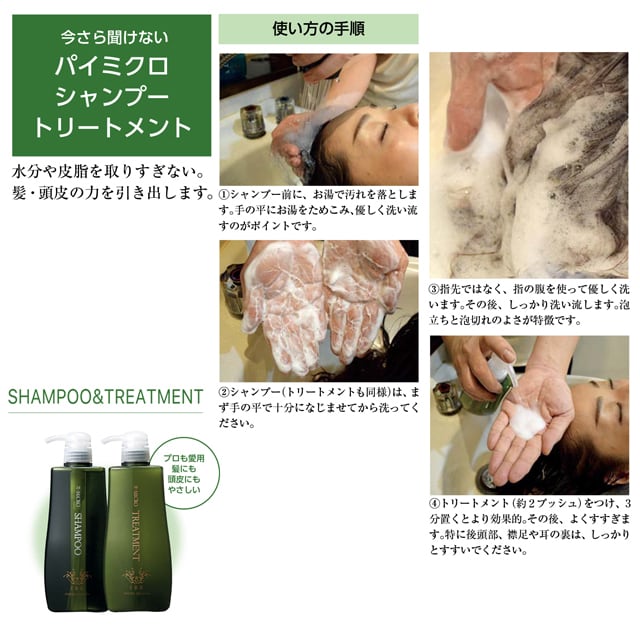 ○髪を潤いとツヤのあるしなやかな手触りに仕上げます。